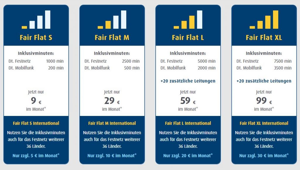 Sie erhalten schon ab 4,19 Netto im Monat einen Tarif mit 10 parallelen Leitungen sowie einem 10er oder 100er Rufnummernblock aus Ihrer Region. Die ideale Ergänzung zur 3CX TK-Anlage.