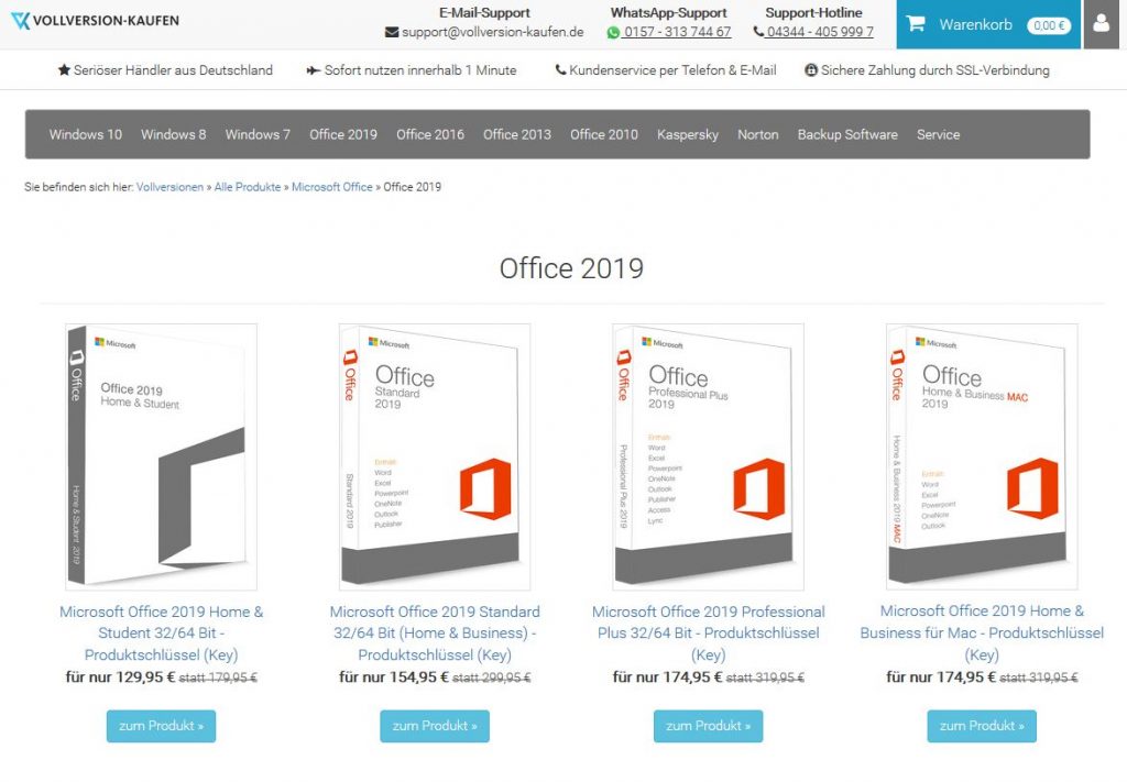 Unser Partner vollversionen-kaufen.de bietet gebrauchte Software Produktschlüssel für Microsoft Office, Windows, Kaspersky zum stark reduzierten Preis. Die Lieferung erfolgt binnen 2 Minuten per Mail (optional auch mit DVD/USB als Installationshilfe). Über 60.000 zufriedene Kunden!